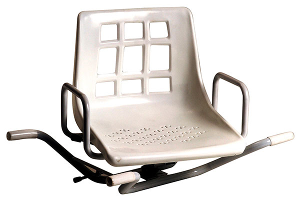 Questo sedile, in acciaio verniciato bianco, utilizzabile su tutte le vasche che abbiano l’interno vasca da 46 a 62 cm. Aiuta nelle operazioni di igiene personale in totale sicurezza. Due perni bloccano l’ausilio ai bordi interni della vasca per evitare che possa spostarsi accidentalmente dal suo appoggio. Il sedile girevole, ruota su se stesso di 360° ed è possibile bloccarlo ogni 90° grazie ad una leva che lo aziona e lo blocca nella posizione desiderata. Ingombro bracci della base: L 74 x P 52 cm. Seduta polietilene bianco: h 35 cm. (Schienale L42 x P40 cm.) Portata max Kg. 120.